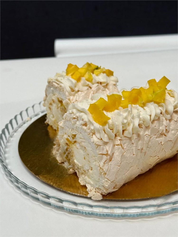 Хрустящая воздушная меренга и сочные кусочки манго.